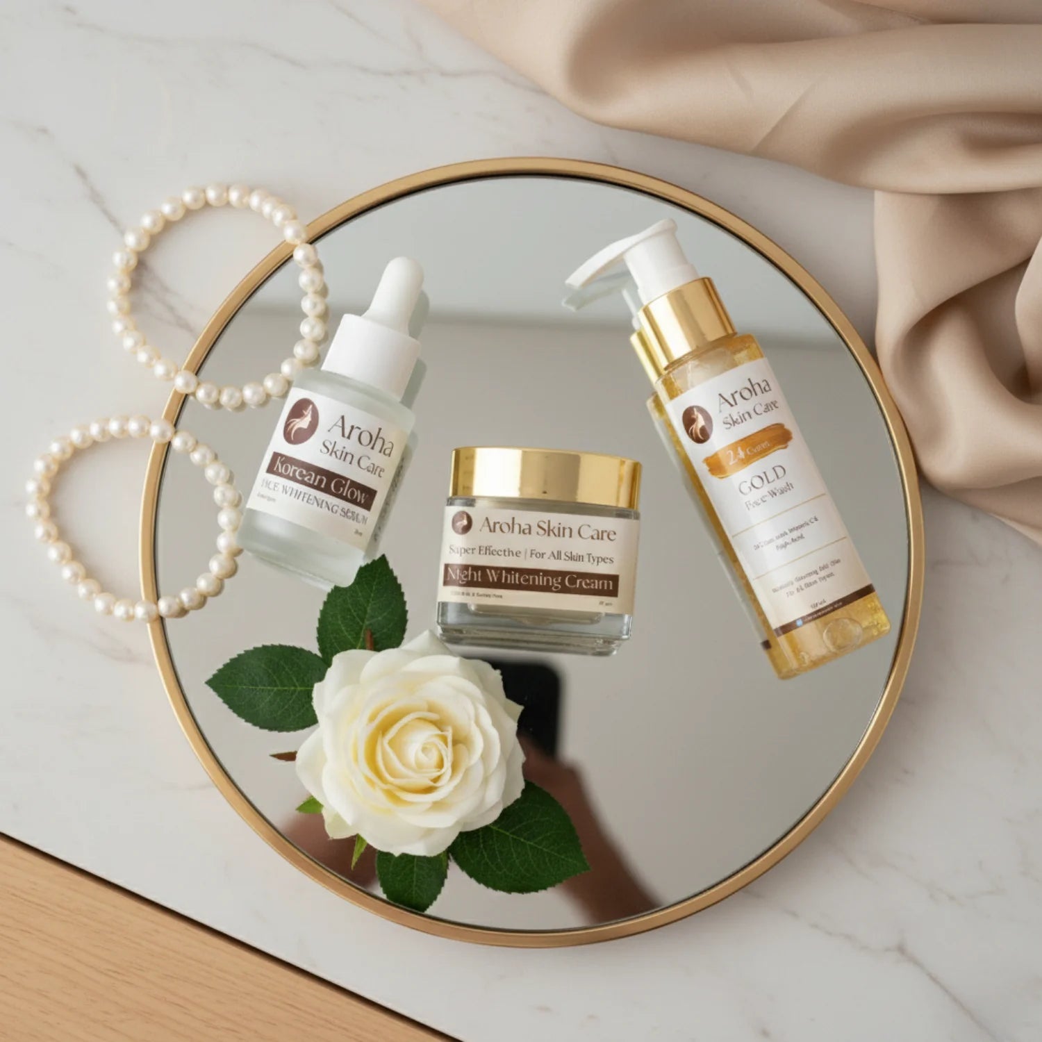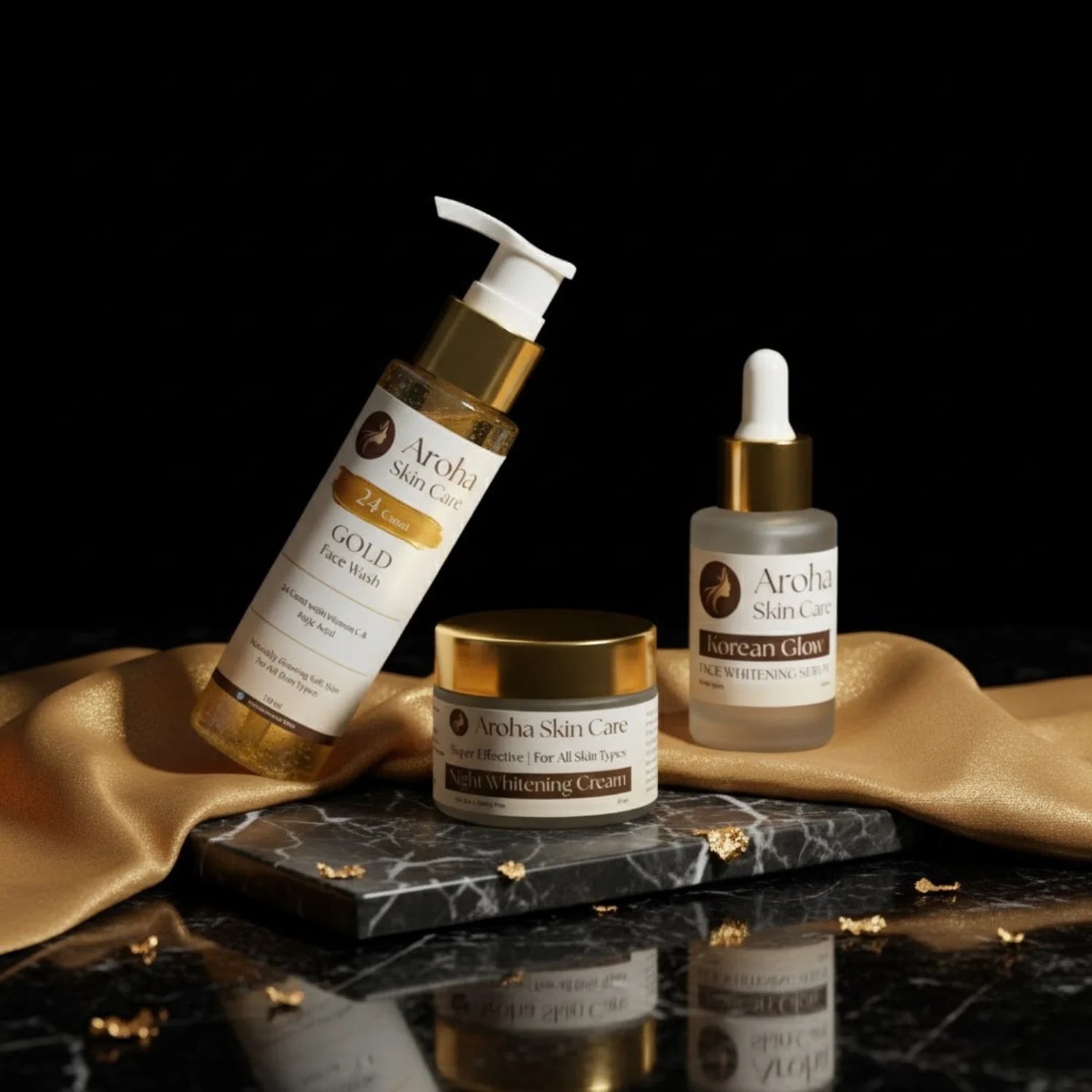 Our signature range - from the 24 Carat Gold Face Wash to the Korean Glow Face Whitening Serum and Night Whitening Cream - works together to brighten, nourish, and rejuvenate your skin.